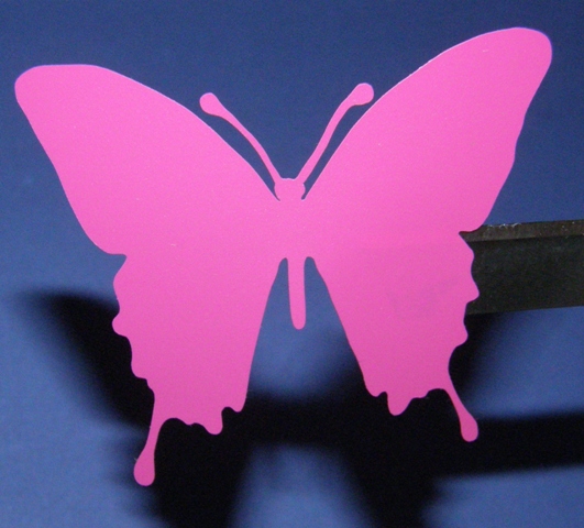 Naklejki wykonujemy techniką ploterową, tj. z arkusza jednobarwnej folii wycinamy komputerowo zaprojektowany wzór. Przy zastosowaniu tej metody naklejki nie mają tła oraz nieestetycznych obwódek. Na naklejki o skomplikowanym układzie oraz na napisy nanosimy folię transportową, dzięki czemu w całości mogą zostać naklejone na wybrane miejsce (więcej informacji w Instrukcji naklejania).