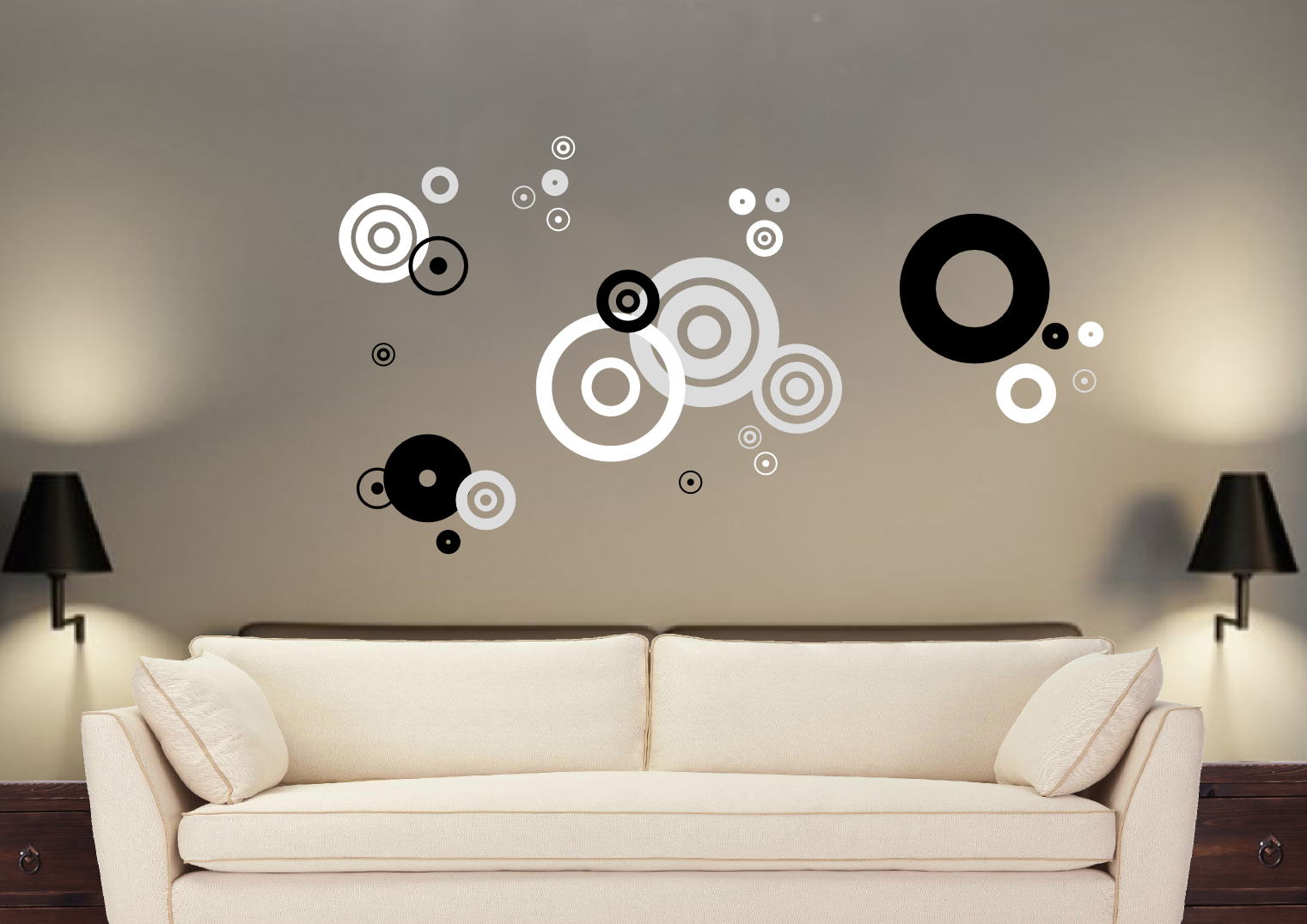 Naklejki nie mają tła, ani nieestetycznych obwódek. Wzór wycinamy z jednobarwnego arkusza folii. Na każdy arkusz nanosimy folię transportową, dzięki czemu naklejki bezproblemowo można przenieść na podłoże docelowe. O układzie naklejek decydujesz sam, dzięki czemu możesz uzyskać zupełnie inną kompozycję niż na naszej aranżacji.