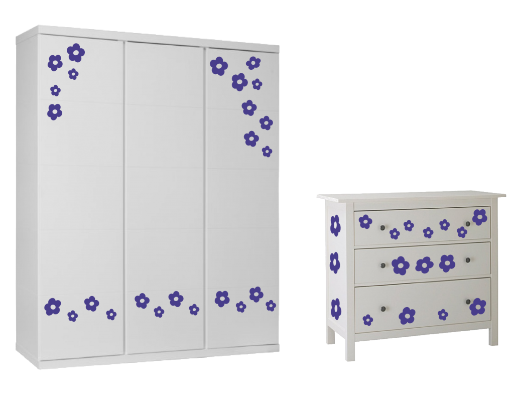 Kupując jedną sztukę otrzymujesz komplet 42 sztuk jednokolorowych naklejek w wybranym kolorze folii. W zestawie znajdują się kwiatki o średnicy 4 cm, 5 cm oraz 6 cm. Arkusz naklejek widoczny jest na 2-m zdjęciu.