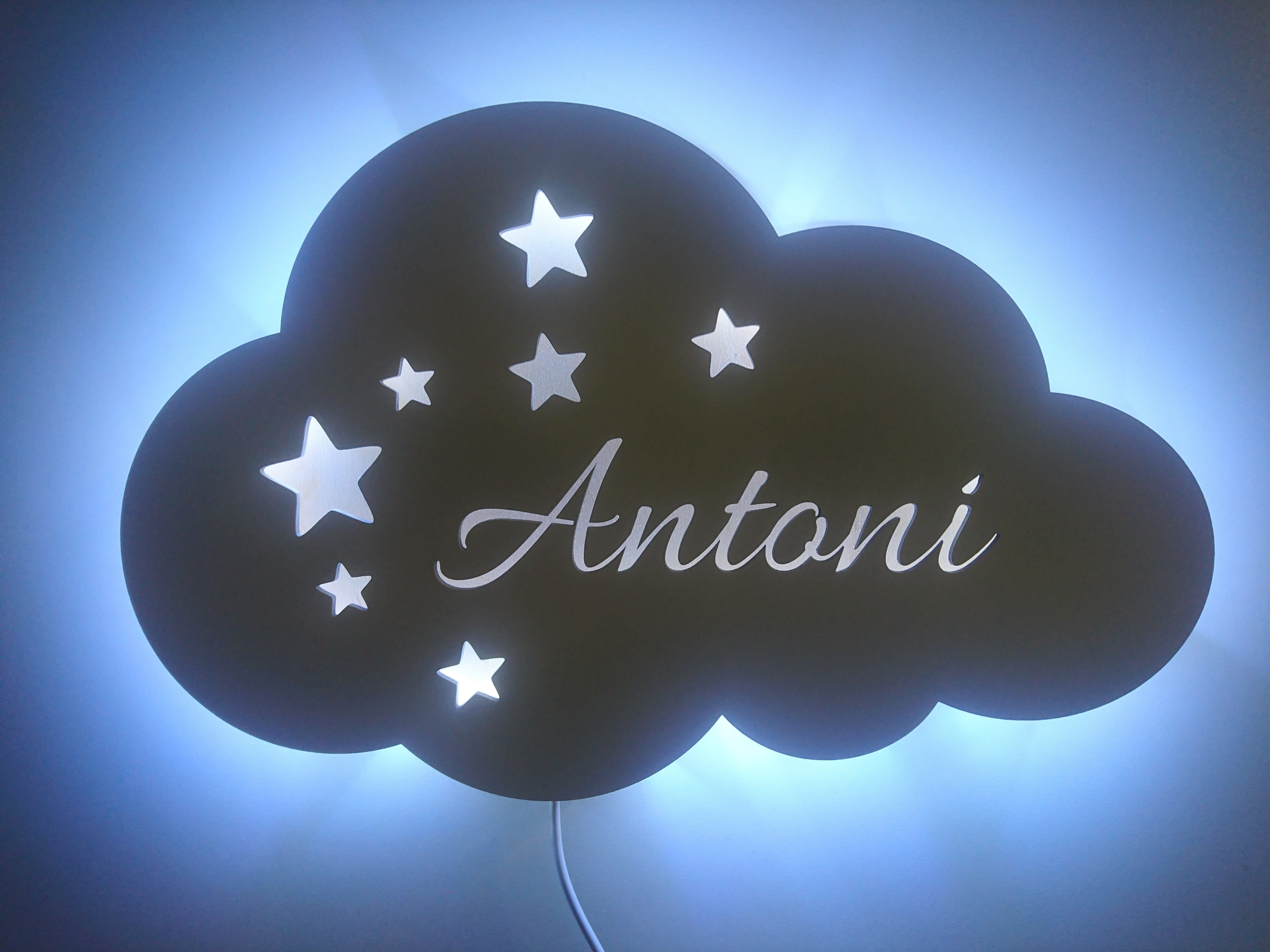Lampka nocna LED CHMURKA z imieniem imię dziecka zas. sieciowe 230V