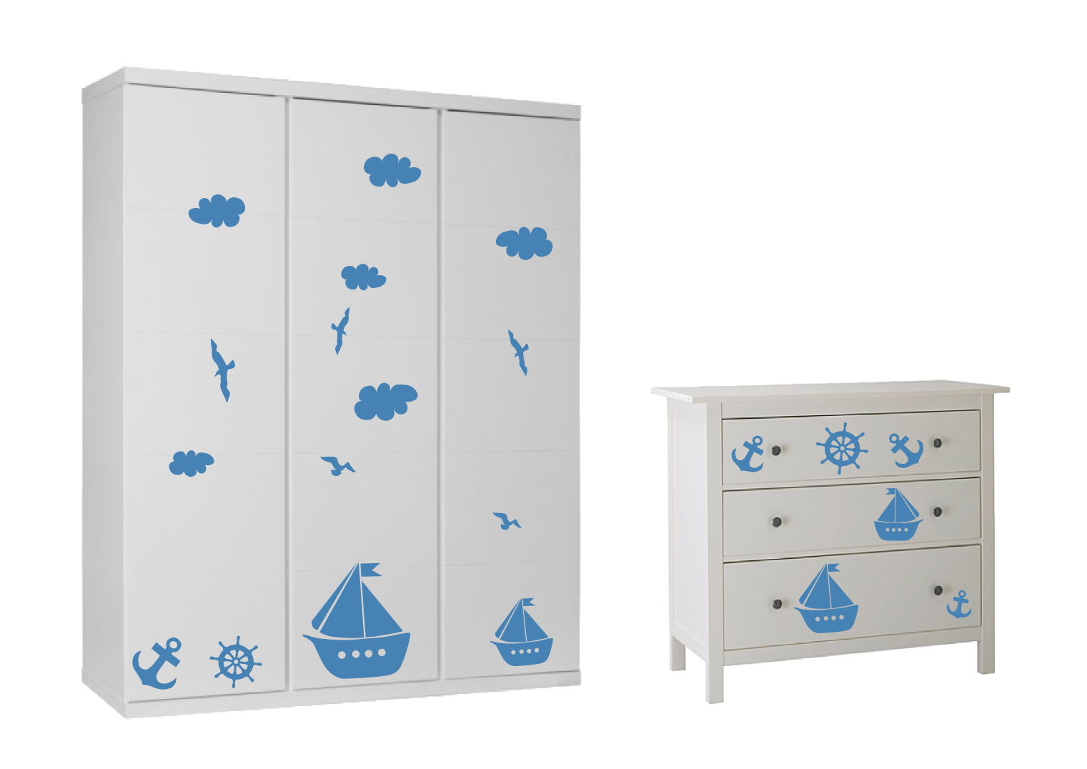 naklejki MORZE ŁÓDKA CHMURY zestaw 21 szt