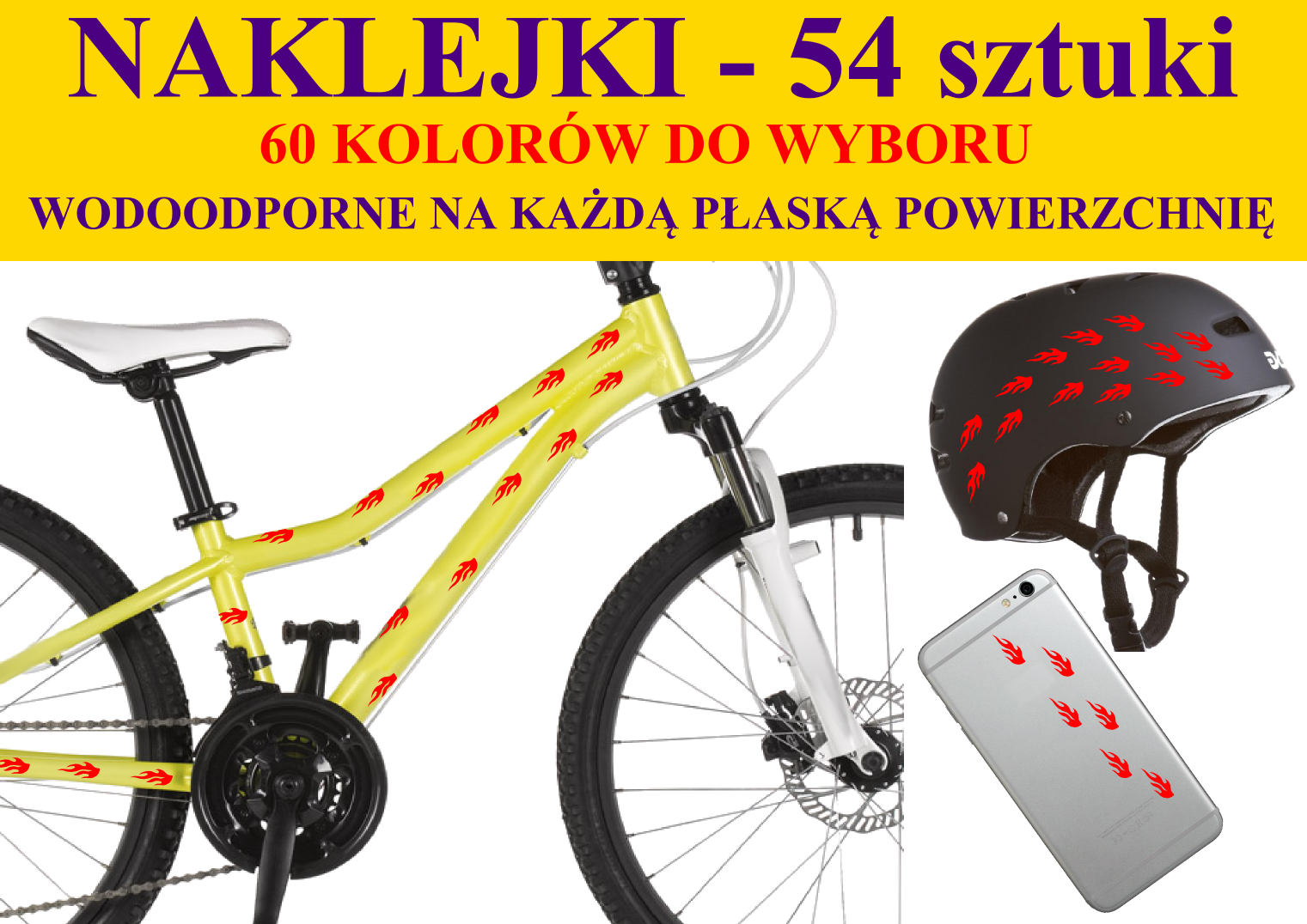 NAKLEJKI NA ROWER, KASK - PŁOMIENIE - 54 szt
