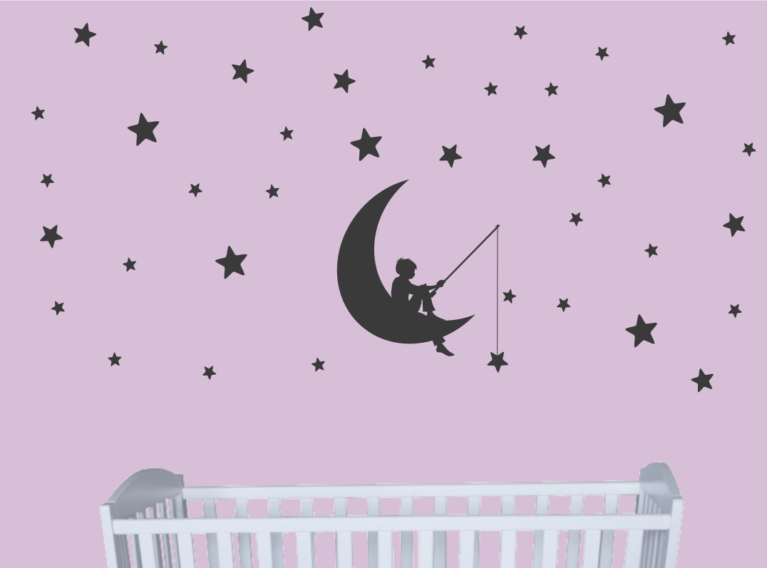 naklejki CHŁOPIEC NA KSIĘŻYCU + GWIAZDY zestaw, 60 kolorów